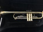 The Blessing B127 Scholastic Trumpet is in the key of Bb. 1st valve slide thumb hook, Monel pistons, 3rd valve slide stop, Amado push button-style water keys, lacquered finish.